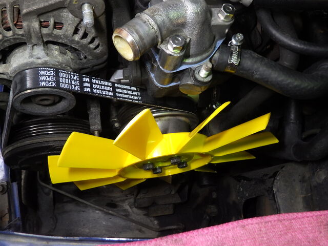 新しいベルト・ウォーターポンプ・クーリングファン取付。