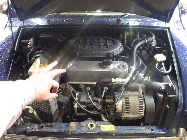 ウォーターポンプはオルタネーターの陰で見えませんがファンブレードの元側にあります