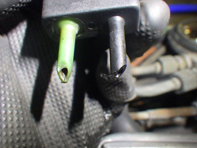緑の方はシリコンホースに変わるのでそのままにしておきます。