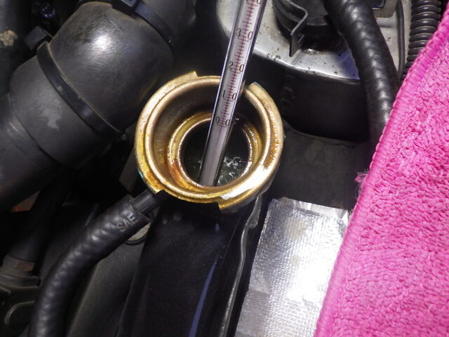 サーモスタッドは新しいものに交換します。76度開弁のサーモスタッドが装着されていたので新しいものも同じく76度のものを装着しました。