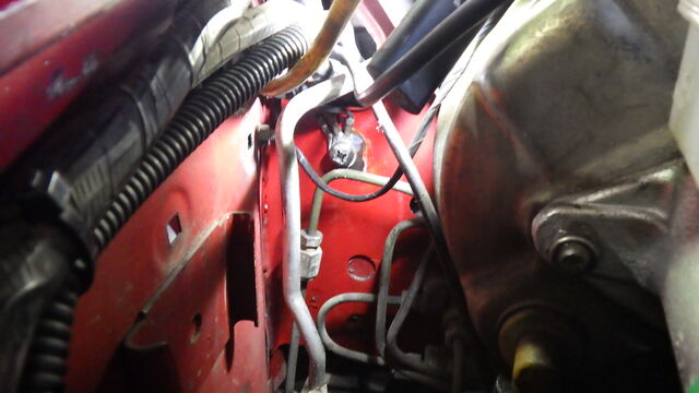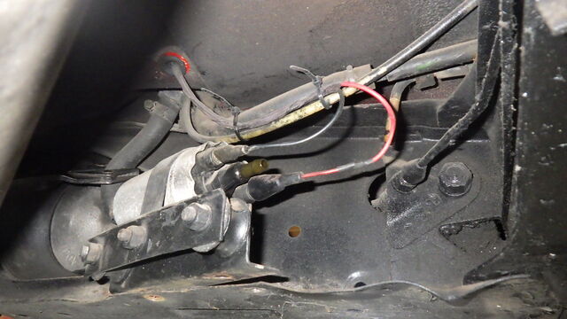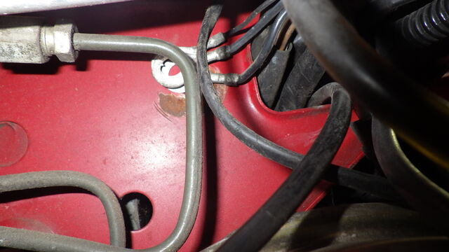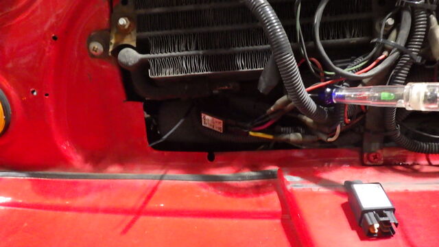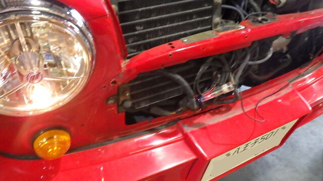 ライトのアースポイントがいつもの所 (ラジエターの後ろ)ではなかったので