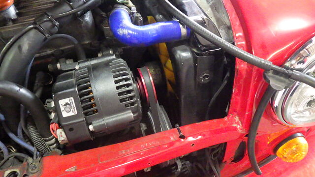 オルタネータとブロックの間にプライバーを入れたいので先にオルタネータを取り付けました。