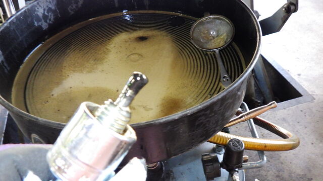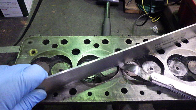 清掃し、オイルストーンで表面を均してゆがみ点検します。