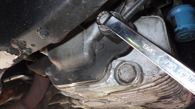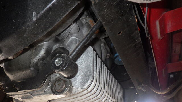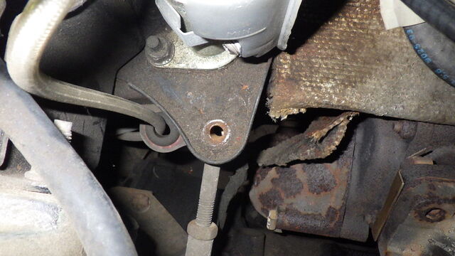 エキゾーストマニホールドのスタッドボルトをかわす為エンジンを傾けるのに