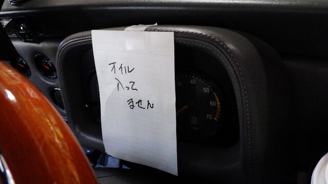 間違ってエンジンかけられないように張り紙しました。