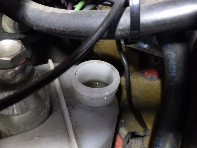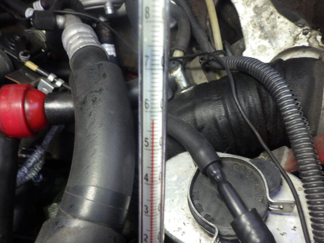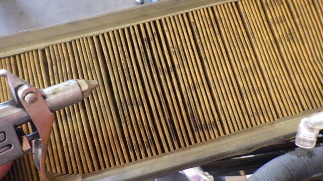 ラジエーター内にクーラントが勢いよく流れ込んできました。