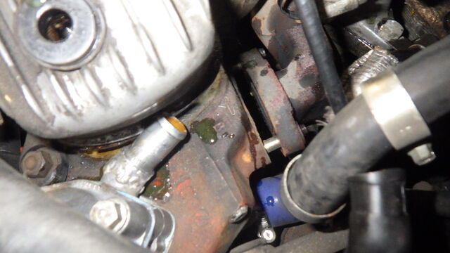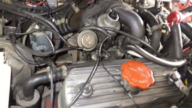 ヘッドカバーを外そうとしたらバイパスパイプが干渉して外れません。
