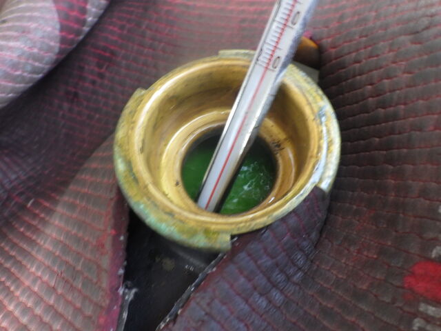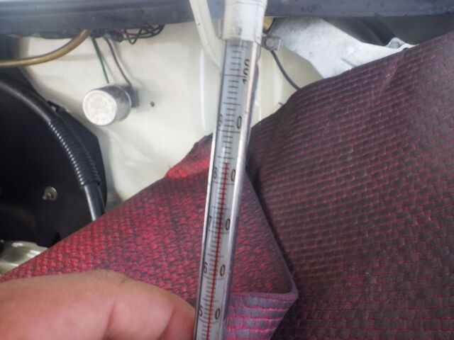 サーモ付近の温度とラジエーターに入れた水温計に差があります。低温時のサーモスタッドはしっかりと閉じています。