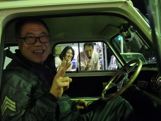 積載車で出発 予備検査ラインを通してから陸事に向います。