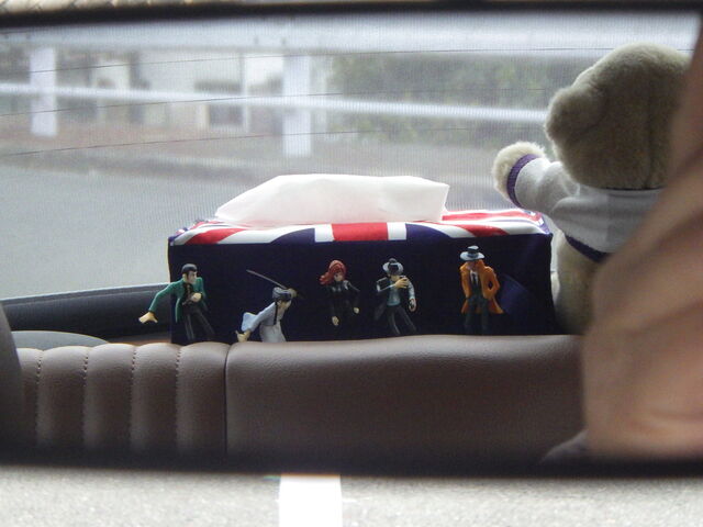 ルームミラーには世界的に有名なグループとそれを追うニヒルな漢が。