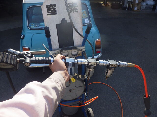 一度入れるとやめられないセラミックエアー+窒素を充填していきます。