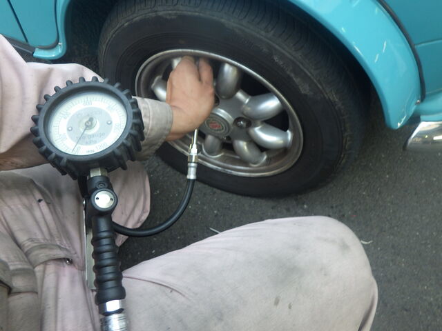 タイヤの中に新しいセラミックエアーがしっかりと充填できるよう2回に分けて充填しました。
