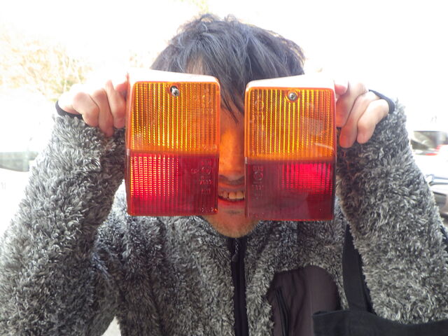 右のリバースランプレンズの上側遮光板が無かったので自作しました。