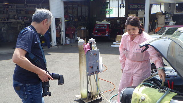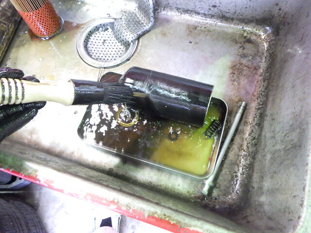 洗浄液を入れてエンジンをかけて洗浄を行っていきます