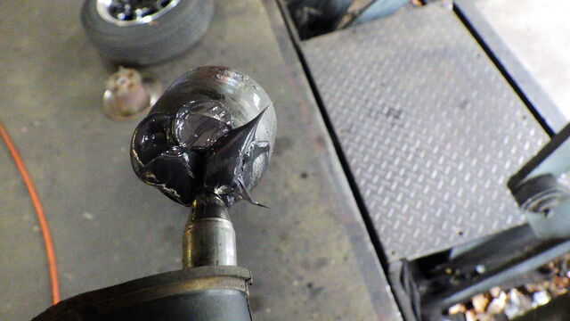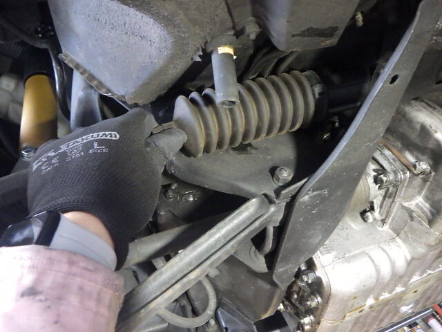 タイロッドのジョイント部にグリスをたっぷりと塗りこみます。
