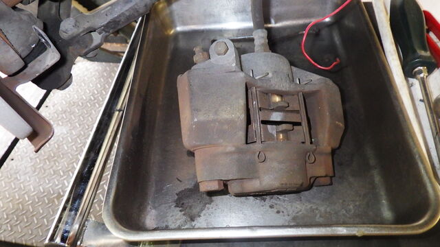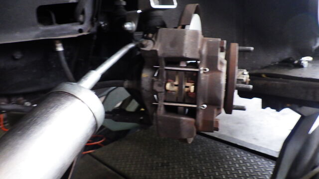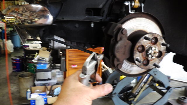 キャリパーはホースに負担がかからないように吊っておきます。