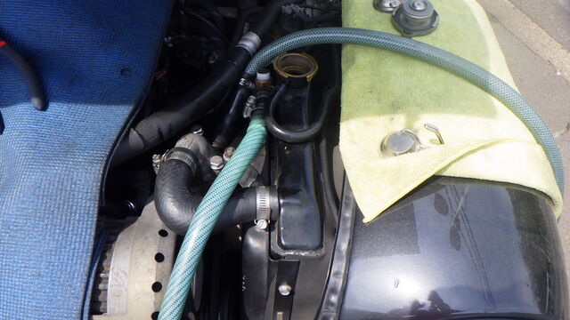 ラジエーター口から逆流させてすすぎ出していきます