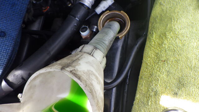 ラジエーター内に勢いよく流れ込んでいっていました