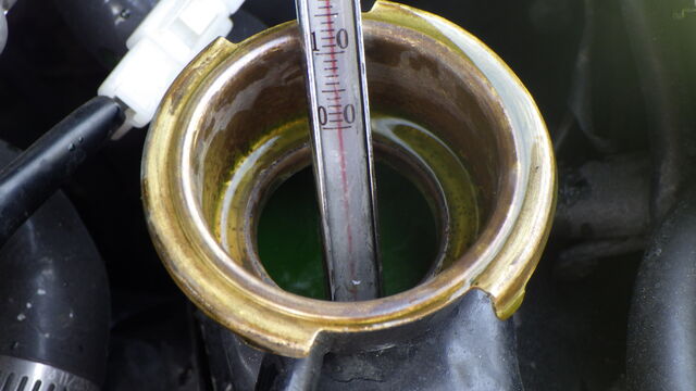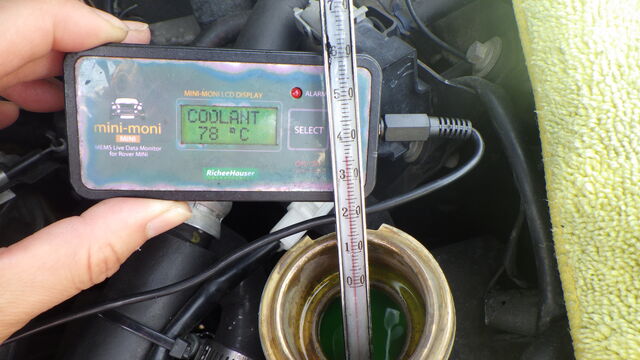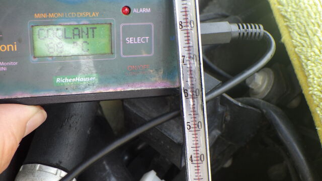 ラジエーターに差し込んだ水温計が86℃になったところで弁の開きが全開になりました