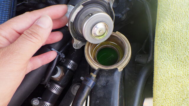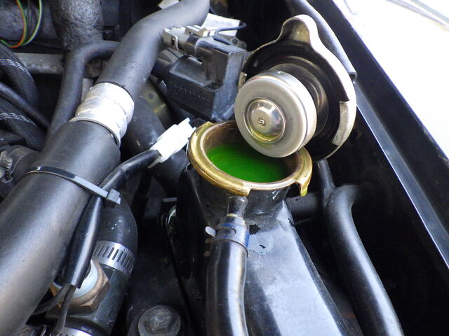 この時、エンジンが温まっていた状態だったので熱膨張で冷却水の水位が上がっていました。