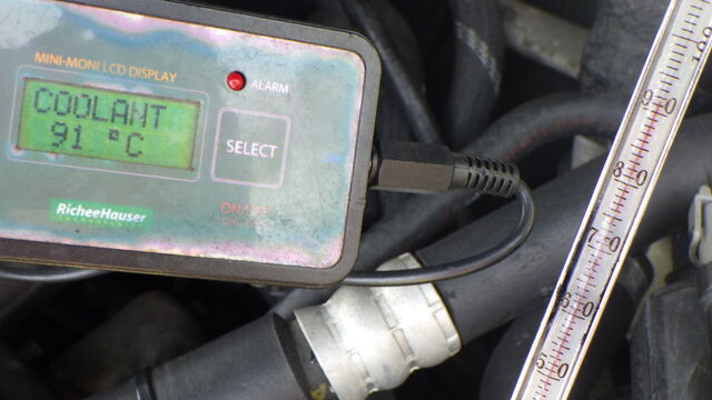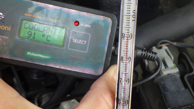 エンジン側の水温計とラジエーターに差し込んだ水温計に温度差があります