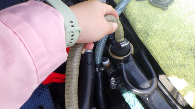 ヒーターコアからも逆流させてすすぎ出します