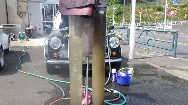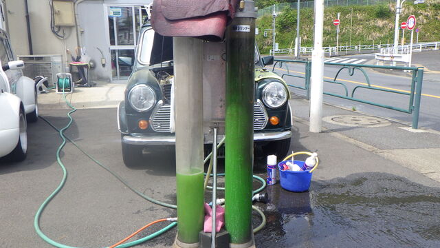 洗浄液を入れてエンジン始動で洗浄開始です