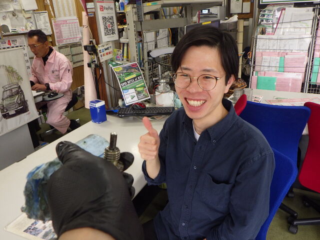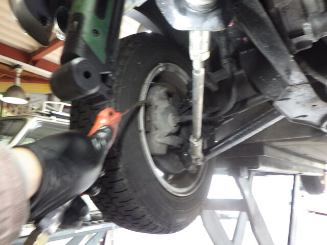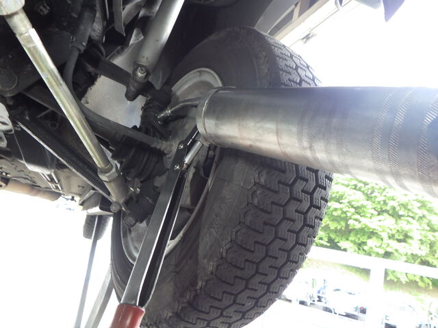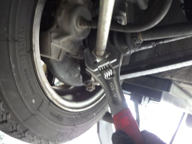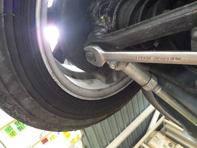 足回り点検。左上のボールジョイントに小さなガタがあります。
