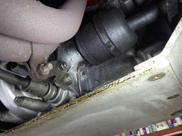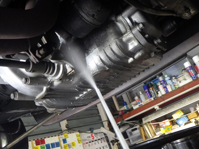 油汚れはタイミングカバー側と右のデフサイドシール付近に少々あります。