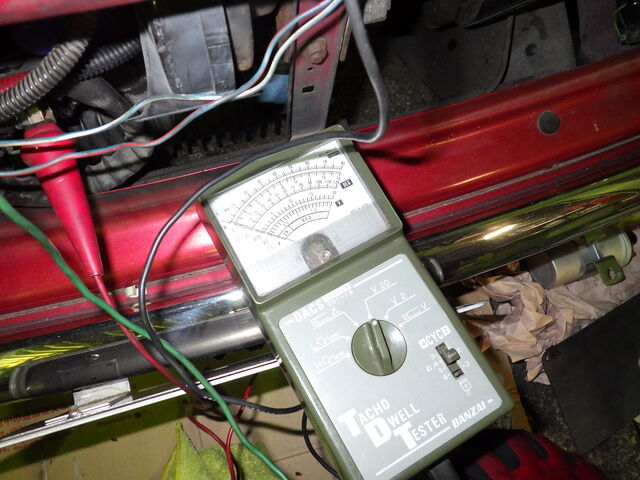 使って調べてみたところ針が振れません。イグニッションコイルの⊖側で電気が流れるのを