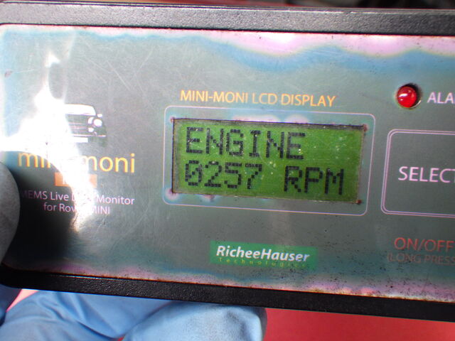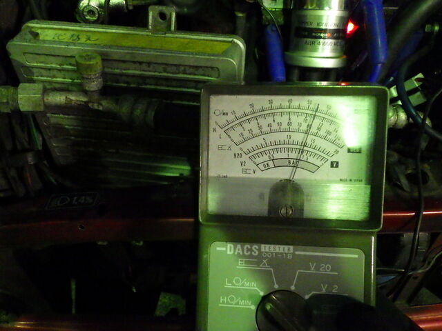 エンジンがかかりました。タコの信号が来ているとこのように針が振れます。