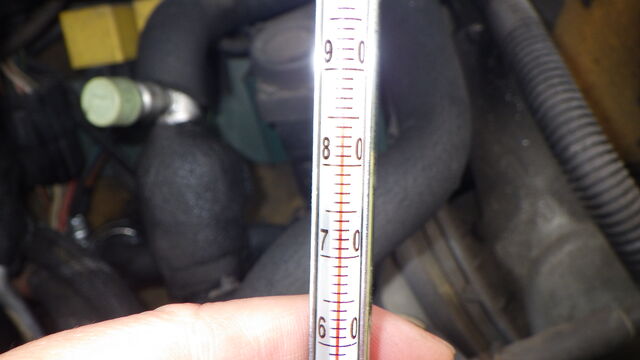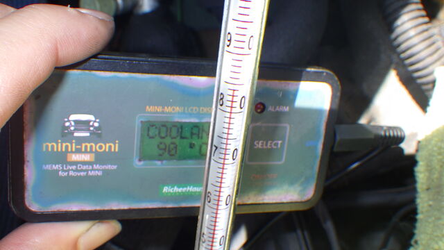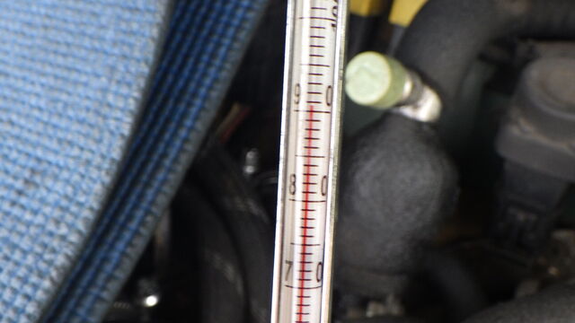 車体側の水温計とラジエーターに差し込んだ水温計に温度差があります