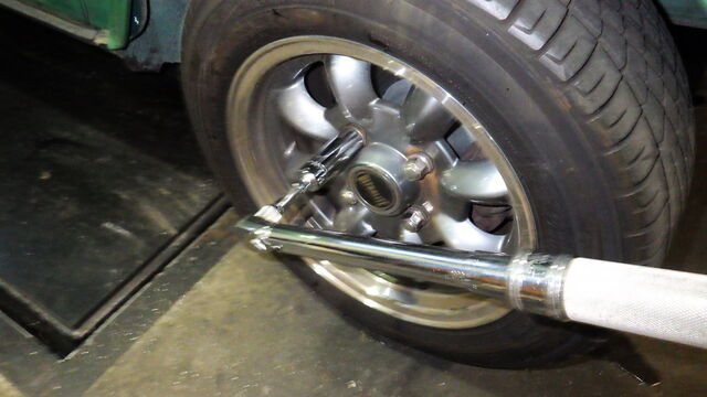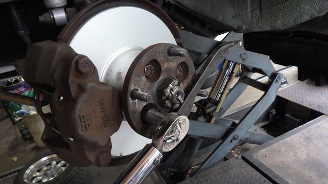 ディスクローターとハブの取り付けボルトを規定トルクで締め付けます。