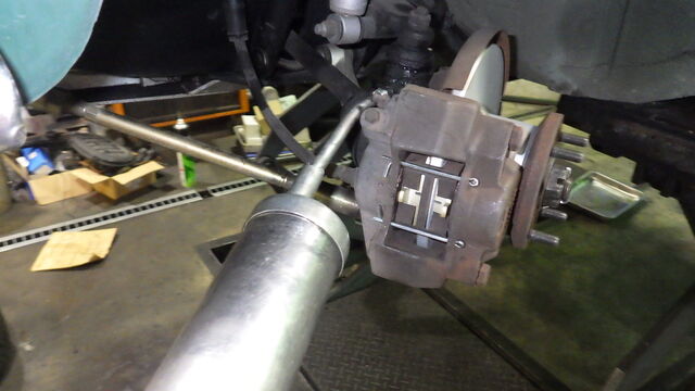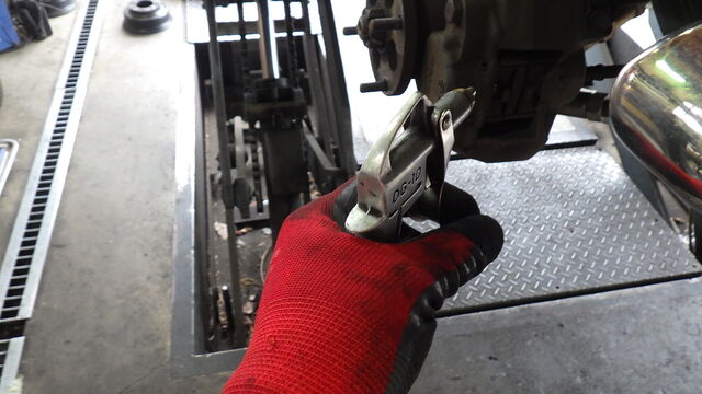キャリパーのマウントボルトを規定トルクで締め付けます。