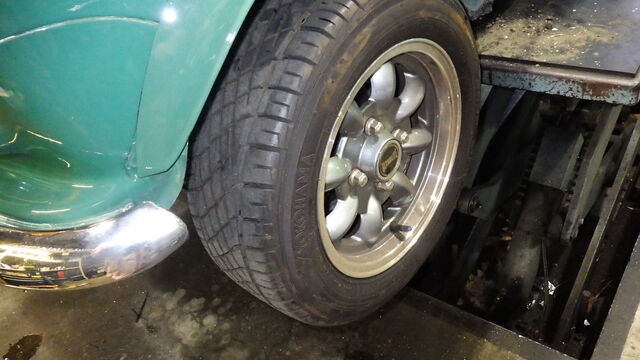 バッテリーとカバーを交換し、タイヤを取り付け車をおろします。