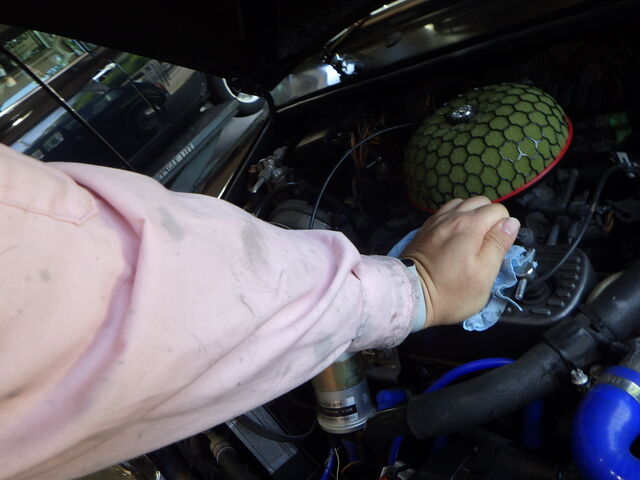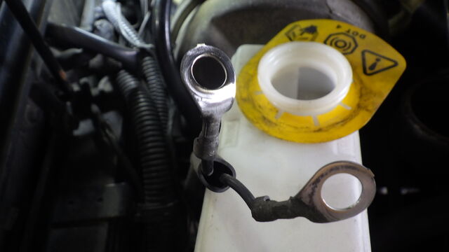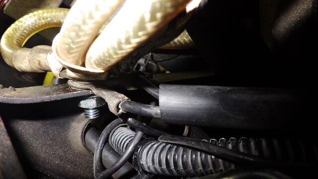 アースポイントが錆びていたので、アーシングのコードと共締めします。