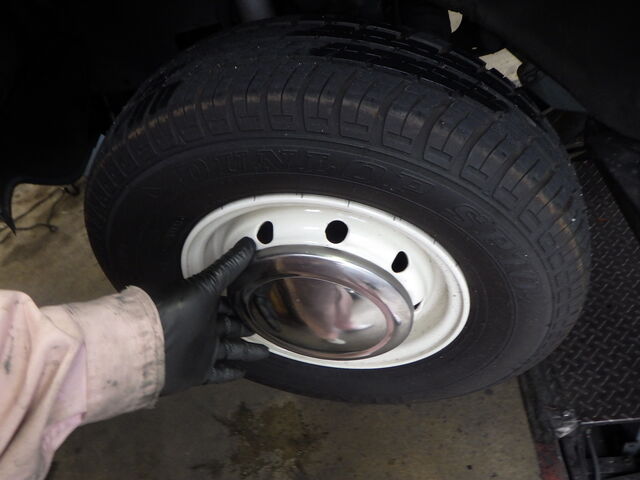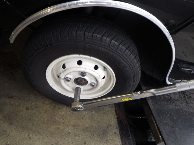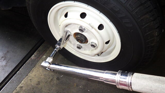 タイヤを取り付けホイールナットを規定トルクで締め付けます。