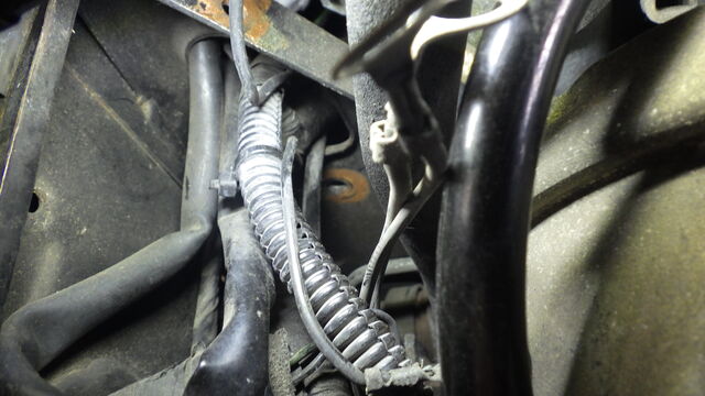 ノーマスのフォグランプの配線がスターターのハウジングと干渉して