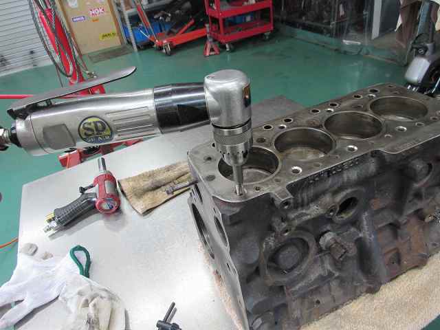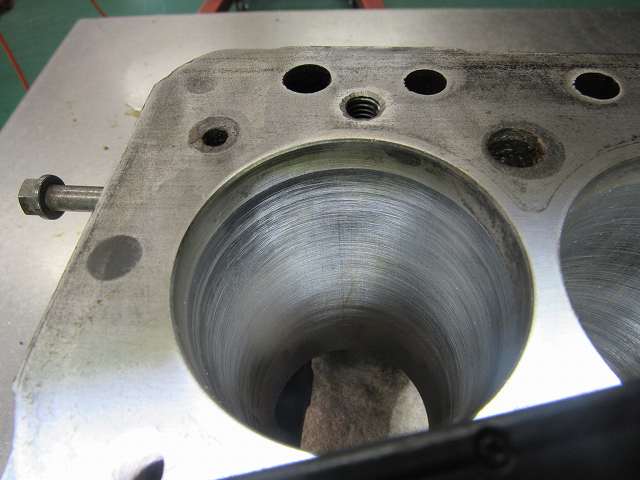 ヘッドの密着を良くするためにヘッドのスタッドボルト穴をテーパーに抉りを入れます