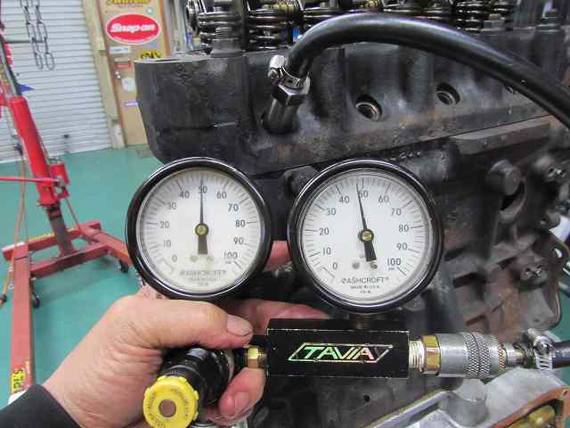 ポートをテープで塞いでいるのでピストン側からブローバイへ抜けています