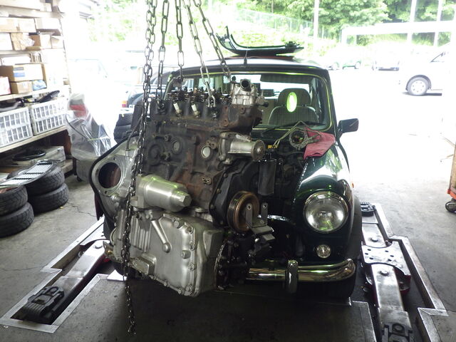 白煙が出たエンジンを降ろします。