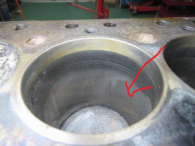 シリンダー壁のクロスハッチが全く残っておらず矢印の部分は光ってます。
