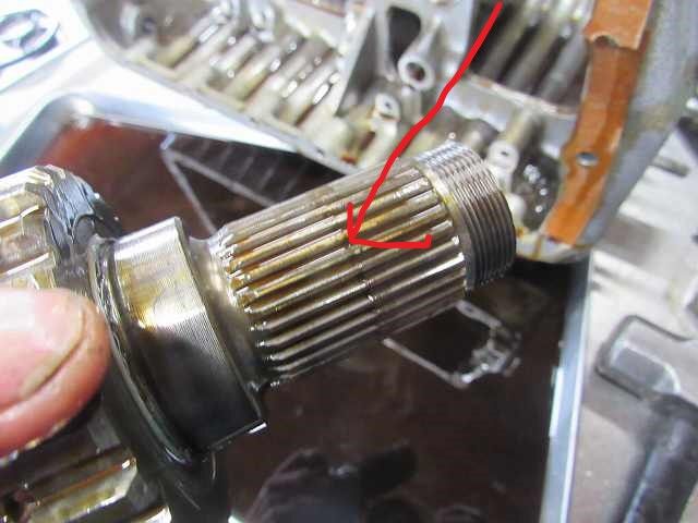 トップ&リバースハブの取付けナットが緩んでいたのでハブを抜きましたがスプラインの消耗が見られます