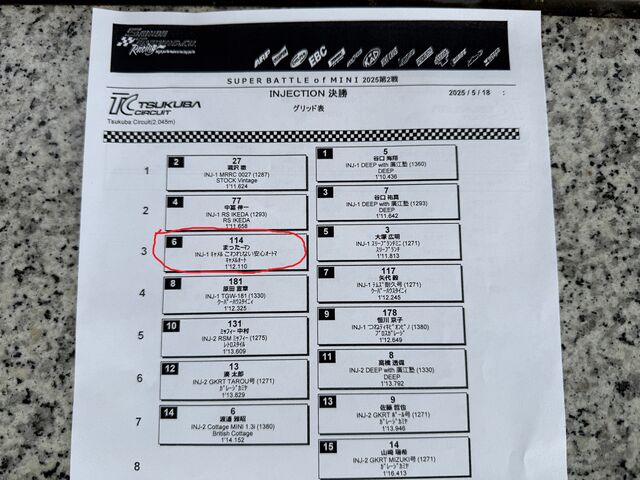 今回からインジェクションクラスが2クラスになりましたがワークスATと同じINJ-1クラスです