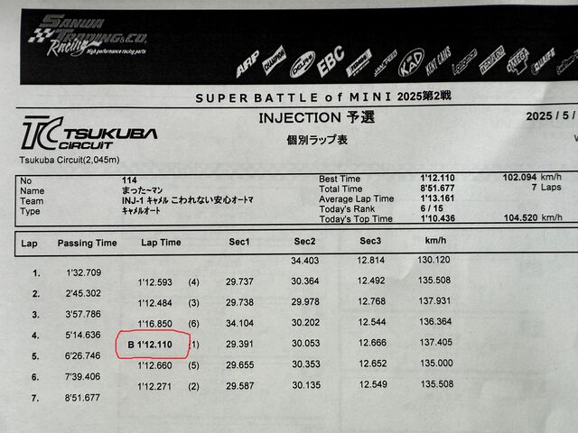 スーパーバトルオブMINI 第2戦に参戦しました。