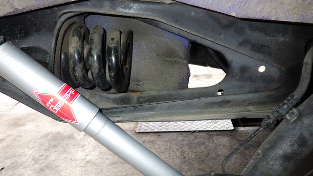 右側はショックアブソーバーの上側のナットが見えてます。