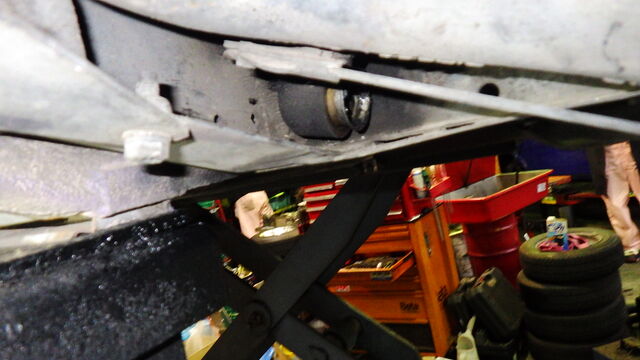 後ろ側のサブフレームマウントを外してサブフレームを押し下げて