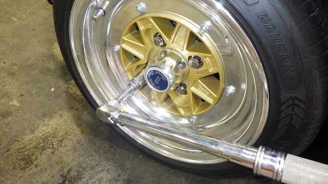 タイヤを戻して規定トルクで締め付けます。