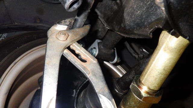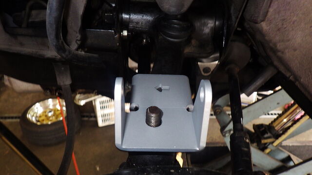 調整式ロワーアームに新しいブッシュを組み込んで、ロアアームを車体に