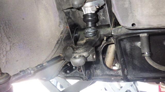 アッパーアームに取り付けたナックルジョイントとハイローキットを